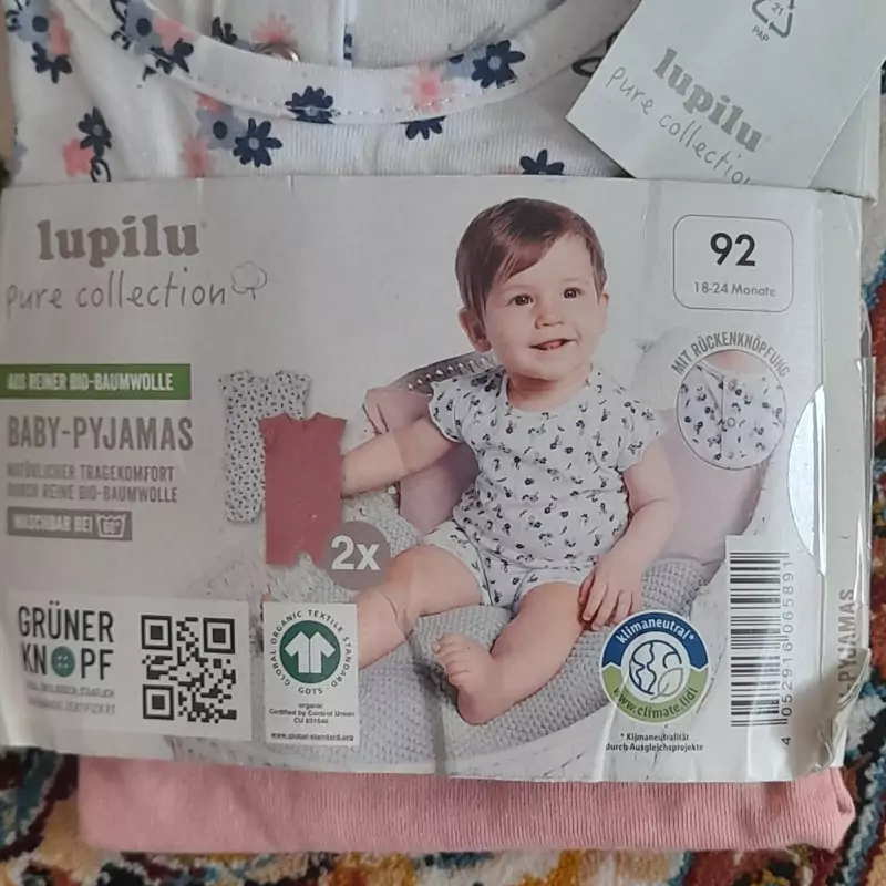 زیر دکمه نوزادی دخترانه برند اروپایی lupilu جنس نخ پنبه لطیف در دو رنگ سفید گلدار و صورتی ساده سایز هجده ماهگی تا دو سالگی